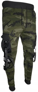 Spodnie dresowe bojówki w kolorze moro Męskie spodnie dresowe bojówki z sześcioma kieszeniami Wykonane z miękkiego, przyjemnego w dotyku materiału Nie spiera się i nie pęka nawet przy bardzo mocnym rozciąganiu Regulowane w pasie mocnym ściągaczem i sznurkiem Nogawki zakończone ściągaczem Komfortowy krój Idealne do luźnych miejskich stylizacji Materiał: 65% bawełna, 35% poliester, Wymiary (mierzone na płasko): tolerancja +/- 2cm Rozmiar M: Szerokość w pasie min. : 75 cm, szerokość w pasie max.