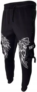 Spodnie dresowe bojówki w kolorze czarnym Męskie spodnie dresowe bojówki z czteroma kieszeniami Wykonane z miękkiego, przyjemnego w dotyku materiału Regulowane w pasie mocnym ściągaczem i sznurkiem Nogawki zakończone ściągaczem Dwie kieszenie boczne na rzep Komfortowy krój Idealne do luźnych miejskich stylizacji Materiał: 65% bawełna, 35% poliester, Wymiary (mierzone na płasko): tolerancja +/- 2cm Rozmiar M: Szerokość w pasie min. : 75 cm, szerokość w pasie max.