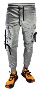 Spodnie dresowe bojówki w kolorze szarym Męskie spodnie dresowe bojówki z sześcioma kieszeniami Wykonane z miękkiego, przyjemnego w dotyku materiału Nie spiera się i nie pęka nawet przy bardzo mocnym rozciąganiu Regulowane w pasie mocnym ściągaczem i sznurkiem Nogawki zakończone ściągaczem Dwie kieszenie boczne zasuwane na zamek Komfortowy krój Idealne do luźnych miejskich stylizacji Materiał: 65% bawełna, 35% poliester, Wymiary (mierzone na płasko): tolerancja +/- 2cm Rozmiar M: Szerokość w pasie min. : 75 cm, szerokość w pasie max.