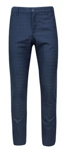Spodnie Eleganckie Granatowe w Kratkę, Zwężane, Chinosy, Męskie -RIGON