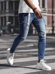 JEANSY MĘSKIE TYPU SLIM FIT / RURKI, SPODNIE DOPASOWUJĄ SIĘ DO SYLWETKI, POSIADAJĄ KIESZENIE Z PRZODU I Z TYŁU ORAZ OZDOBNY ODPINANY ŁAŃCUCH Z BRELOKIEM, MATERIAŁ: 97% BAWEŁNA, 3% ELASTAN; MODEL (183 CM, 80 KG) MA NA SOBIE ROZMIAR 32.