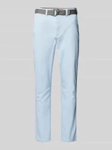 Spodnie materiałowe męskie MCNEAL;Mieszanka bawełny i elastanu;Krój regular fit;Pasek w kontrastowym kolorze ze sprzączką typu D;Wpuszczane kieszenie;Zapięcie na guzik i zamek błyskawiczny;Szerokość w pasie w rozmiarze 50: 45 cm;Długość wewnętrzna nogawki w rozmiarze 50: 82 cm