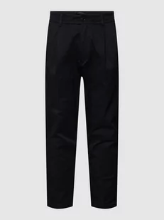 Spodnie materiałowe męskie DRYKORN;Mieszanka bawełny i elastanu;Luźny krój;Model ‘chasy’;Jednolity kolor;Elastyczny pas;Zapięcie na guzik i zamek błyskawiczny;Wpuszczane kieszenie w stylu francuskim;Kieszenie z tyłu;Zakładki w pasie;Szerokość w pasie w rozmiarze 32/32: 38 cm;Długość wewnętrzna nogawki w rozmiarze 32/32: 65 cm