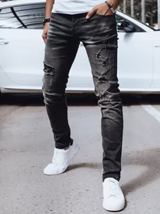 Rewelacyjne męskie spodnie jeansowe. Wykonane z przyjemnego w dotyku materiału. Zapinane na guziki. Modne dziury oraz przetarcia. Trzy kieszenie z przodu. Dw...