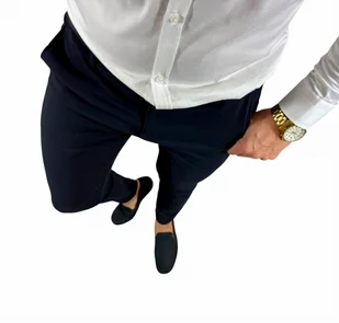 Spodnie wizytowe chino Wykonane z delikatniej, lekko elastycznej tkaniny zapewnią wygodę i komfort w codziennym użytkowaniu. Świetnie sprawdzą się jako element męskiej stylizacji zarówno sportowej jak i tej bardziej oficjalnej. Krój- slim - bardzo dopasowane, zalecamy wybór rozmiaru o jeden numer większy. Skład materiału- poliester/viskoza/elastan 62/35/3% wymiary- W30- obwód w pasie 79cm, długość całkowita 101cm, szerokość w udzie na wys. kroku 27cm, szerokość nogawki na dole 15cm W31- obwód w pasie 82cm, długość całkowita 102cm, szerokość w udzie na wys.