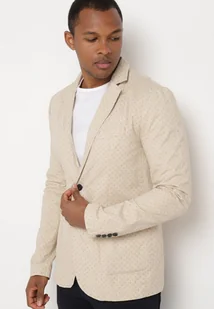 Beżowa Bawełniana Marynarka Jednorzędowa z Guzikami Atriona