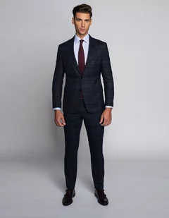 Carini to granatowa marynarka w subtelną kratę, wykonana z wysokogatunkowej wełny z domieszką poliamidu oraz elastanu, który gwarantuje komfort i swobodę ruchów. Oryginalności nadaje jej acetatowa podszewka w wyrazistym kolorze, guziki z orzecha corozo oraz zamknięte wyłogi. Idealna zarówno na oficjalne uroczystości (w zestawieniu ze spodniami z tej samej tkaniny), jak i do pracy.