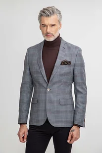 Popielata marynarka w wyrazistą kratę z wysokiej jakości wełny MARLANE