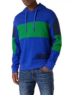 Armani Exchange Męska bluza z kapturem Color Block, Logo Patch, niebieski/zielony, S
