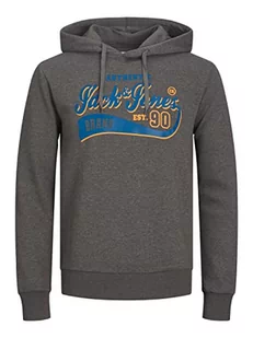 Bestseller A/S Męska bluza z kapturem JJELOGO Sweat Hood 2 COL 23/24 NOOS PLS, ciemnoszara melanż, 6XL, ciemnoszary melanż