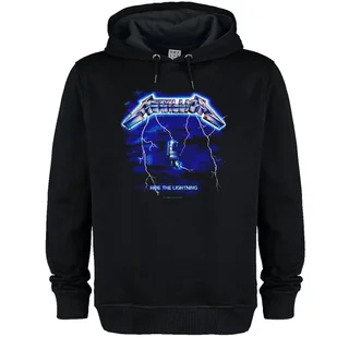 Bluza Z Kapturem Amplified Metallica Ride The Lightning licencjonowany produkt trwała grafika z przodu ściągacze na rękawach kieszenie 2 po bokach miękki polar drapany jako wykończenie środka skład 70% bawełna 30% poliester luźny krój kolor czarny