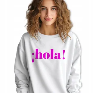 Bluza Biała Dresowa HOLA Napisy Sentencje Cytaty Wiele Wzorów Rozmiar M