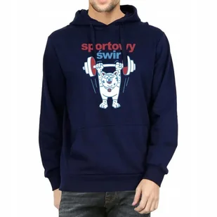 Bluza Granatowa Kaptur Męska Na Prezent Na Siłownię Sportowy Świr Wzory - M