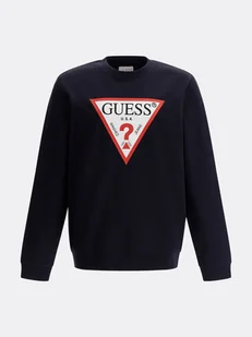 Granatowa bluza z dużym logo Guess. Wykonana z miękkiej bawełny organicznej. Okrągły dekolt, długi rękaw ze ściągaczem. Ściągacz u dołu. Krój: slim fit. Skła...