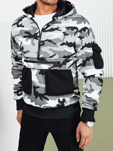 Rewelacyjna męska bluza z kapturem. Wykonana z miękkiego i przyjemnego w dotyku materiału. Wkładana przez głowę. Modny wzór moro. Częściowo rozpinana z przod...