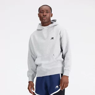 Klasyczna męska bluza z logotypem i napisem New Balance wyhaftowanym na piersi. Odzież wykonano z połączenia bawełny oraz poliestru. Głęboki kaptur ma za zadanie ochronić głowę przed wiatrem i chłodem. Prążkowane mankiety rękawów zapobiegają podwijaniu pod odzieżą wierzchnią, a pojemna kieszeń kangurka umożliwia przechowywanie niezbędnych przedmiotów pod ręką. Bluzę wyróżnia umieszczona na plecach grafika inspirowana grą w koszykówkę.