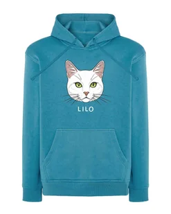Bluza z kapturem Dachowiec Biały Personalizowana Kot Pupil Jasnoniebieski XL