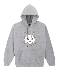 Bluza z kapturem Dachowiec Biały Personalizowana Kot Pupil Szara XL