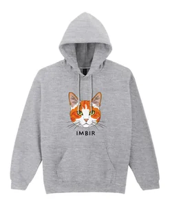 Bluza z kapturem Dachowiec Rudo Biały Personalizowana Kot Szara XL