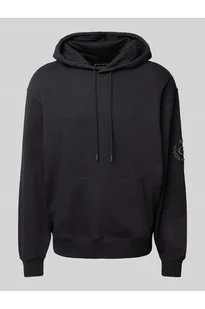 Bluza z kapturem męska GUESS;Mieszanka bawełny;Luźny fason;Model 'CHENILLE';Kieszeń kangurka;Kaptur z tunelem;Wyhaftowane logo;Prążkowane wykończenia;Długość tyłu w rozmiarze M: 71 cm;Długość rękawa w rozmiarze M: 63 cm