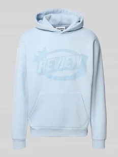 Bluza z kapturem męska REVIEW;Mieszanka bawełny;Luźny krój;Kaptur;Obniżone ramiona;Nadruk z logo;Kieszeń kangurka;Prążkowane wykończenia;Długość tyłu w rozmiarze M: 68 cm;Długość rękawa w rozmiarze M: 65 cm