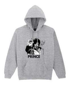 Obok grafiki widnieje stylizowany autograf, który podkreśla kolekcjonerski charakter wzoru i nadaje mu wyjątkowości. Całość dopełnia wyraźny, minimalistyczny napis „PRINCE”, umieszczony pod grafiką, co sprawia, że projekt jest czytelny, mocny i nowoczesny. Monochromatyczna stylistyka w połączeniu z czarnym tłem bluzy tworzy elegancki, ponadczasowy efekt. Taki nadruk świetnie wpisuje się w modę na bluzy muzyczne z wizerunkiem legend rocka i popu. To idealna opcja dla osób, które cenią klasyczne, kultowe motywy oraz chcą wyróżnić się wyrazistym, artystycznym akcentem w stylizacji.