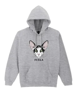 Czarno-białe umaszczenie podkreśla graficzny charakter projektu i sprawia, że nadruk jest czytelny oraz mocno przyciąga wzrok. Umieszczone pod portretem imię kota nadaje bluzie osobisty charakter, czyniąc ją w pełni personalizowanym produktem. To idealna propozycja dla opiekunów kotów orientalnych oraz wszystkich miłośników minimalistycznych, ale wyrazistych motywów zwierzęcych. Personalizowana bluza z czarno-białym kotem orientalnym to nie tylko stylowy element garderoby, lecz także wyjątkowa pamiątka i doskonały pomysł na prezent dla kociarza. Kluczowe cechy produktu: