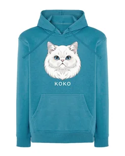 Bluza z kapturem Perski Biały Personalizowana Kot Pupil Jasnoniebieski XL