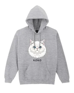 Bluza z kapturem Perski Biały Personalizowana Kot Pupil Szara XL