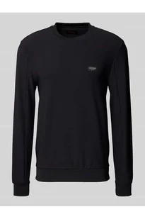 Bluza męska GUESS;Mieszanka materiałów z dodatkiem streczu;Prosty krój;Okrągły dekolt;Naszywka z logo;Prążkowane wykończenia;Długość tyłu w rozmiarze M: 69 cm;Długość rękawa w rozmiarze M: 71 cm