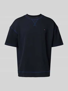Bluza męska Tommy Hilfiger;Mieszanka bawełny z dodatkiem streczu;Luźny krój;Model ‘TRACK TOP’;Okrągły dekolt;Rękaw o dł. 1/2;Szwy w stylu inside out;Wyhaftowane logo;Długość tyłu w rozmiarze M: 71 cm;Długość rękawa w rozmiarze M: 21 cm
