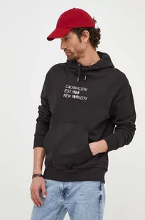 Calvin Klein bluza męska kolor czarny z kapturem z nadrukiem