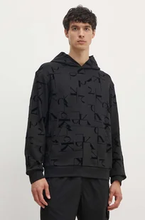 Calvin Klein Jeans bluza bawełniana męska kolor czarny z kapturem wzorzysta J30J325642