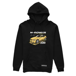 Czarna bluza z kapturem BMW E90 M3 żółta Jeśli jesteś prawdziwym fanem motoryzacji i kochasz klimat jdm, stance i drift, ta czarna bluza z kapturem BMW E90 M...