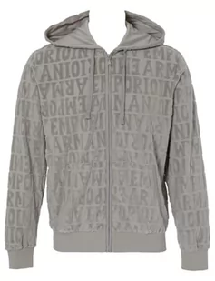 Emporio Armani Męska bluza z zamkiem żakardowym Bold Logo Chenille, Stone Jacquard, M
