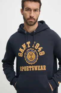 Gant bluza męska kolor granatowy z kapturem z nadrukiem 2015068