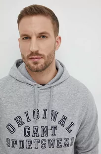 Gant bluza męska kolor szary z kapturem z nadrukiem