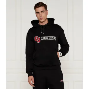 GUESS Bluza ALVIN LS HOODIE LOGO SWTR | Regular Fit | z dodatkiem jedwabiu
