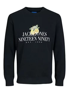 JACK & JONES Męska bluza JORFLORES Sweat Crew Neck SN Sweatshirt, czarna, XXL, czarny, XXL