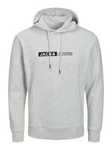JACK & JONES Męska bluza z kapturem Jjneo Sweat Hood, Biały melanż/nadruk: mały, L