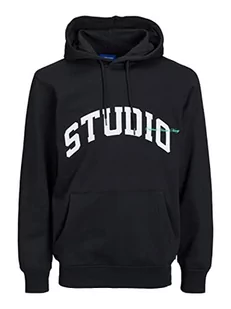 JACK & JONES PLUS Męska bluza z kapturem JORBRINK Studio Sweat Hood PLS z kapturem, czarna, 6XL, czarny, 6XL