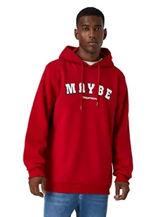 Koton Męska bluza z kapturem Slogan Printed, Czerwony (401)