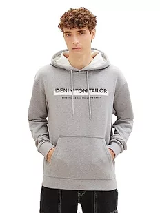 Męska bluza z kapturem TOM TAILOR Denim z nadrukowanym logo, 12035-Szary Melanż Wrzosowy, XL
