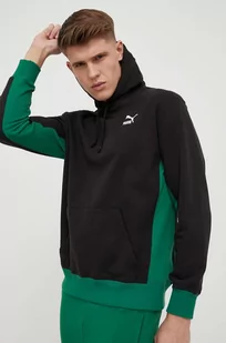 Puma bluza bawełniana męska kolor czarny z kapturem wzorzysta