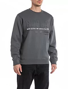 Replay Męska bluza z logo bez kaptura, szara (Titanium 291), XS, Titanium 291, XS