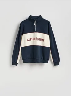 Reserved - Bawełniana bluza ze stójką - granatowy