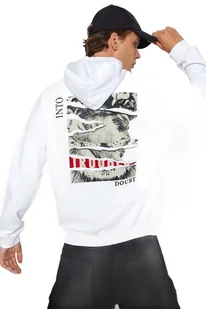 TRENDYOL MAN BLUZA MĘSKA Z KAPTUREM BIAŁA Z NADRUKIEM NA PLECACH S 5DA