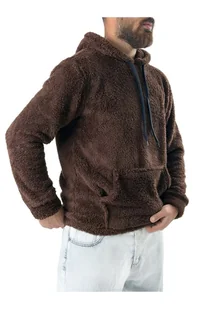 TRENDYOL MAN BLUZA MĘSKA Z KAPTUREM PLUSZOWA BRĄZOWA DŁUGI RĘKAW S 5DA
