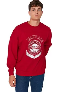 Trendyol Męska bluza oversize z okrągłym dekoltem, bordowa, S, Burgund, S
