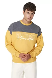 Trendyol Męska bluza oversize z okrągłym dekoltem i sloganem, ŻÓŁTY, XS